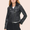 The Women’s Black Biker Hooded Leather Jacket is made well and has a beautiful design, so you can be sure that it will make a good impression on people. Because it is made of high-quality leather in a slim-fit biker shape, the presented jacket is excellent. Because it has a calming viscose lining on its inner side, you won’t ever feel uneasy wearing it. It also has a lapel collar, cuffs with a zipper, and a front zip closure.